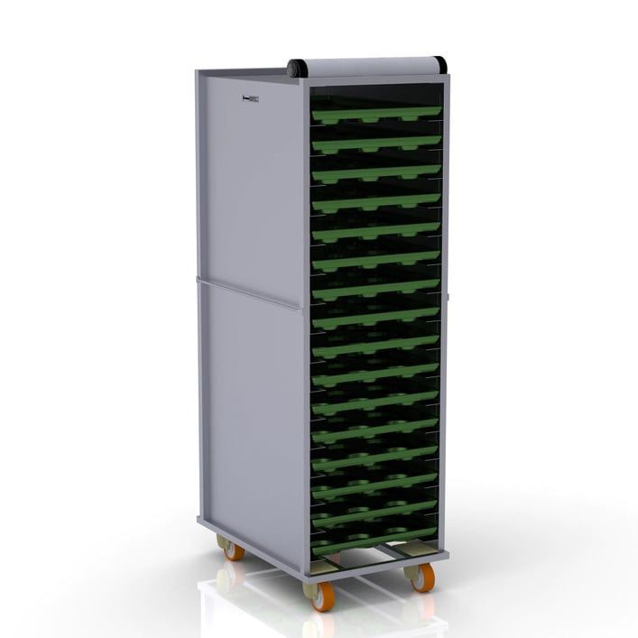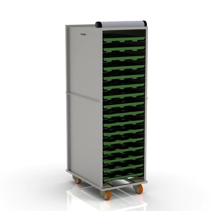 Закрытые системы тележек для жарки используются для транспортировки противней с тестом и для брожения теста внутри пекарни.